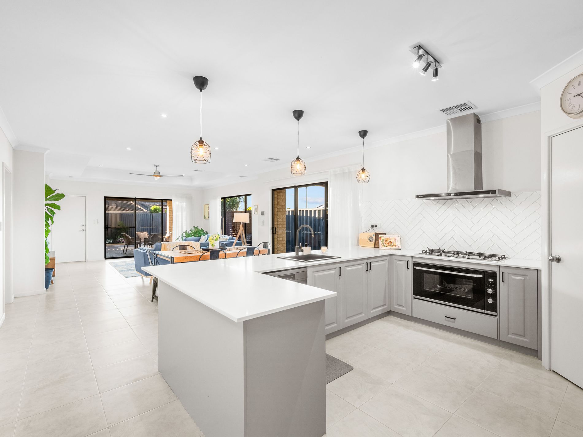 Step inside and be welcomed by a formal lounge featuring a beautiful recessed ceiling, creating a open plan and stylish first impression. Walk through to the master bedroom which offers a spacious walk-in robe and a private ensuite for your comfort and convenience. Moving across to the opposite side, we have the spacious theatre room perfect for entertaining and hosting memorable nights. A light-filled open-plan living, dining, and kitchen area provides the perfect space for family living, complete with a stunning stone kitchen, stainless steel appliances, quality curtains, and stylish light fittings.
