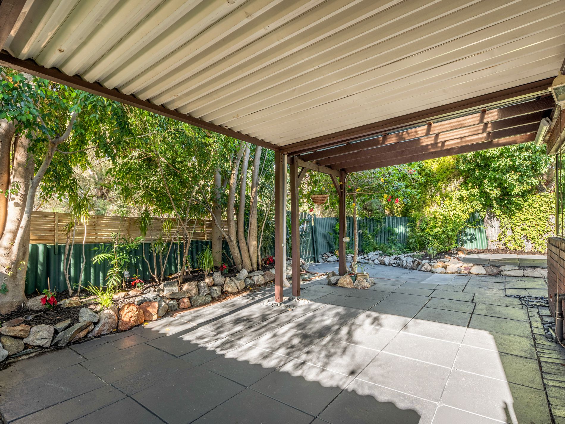 Outdoors is where this property truly shines, a double carport offering a secure parking for vehicles, while the backyard features an expansive outdoor entertainment area.