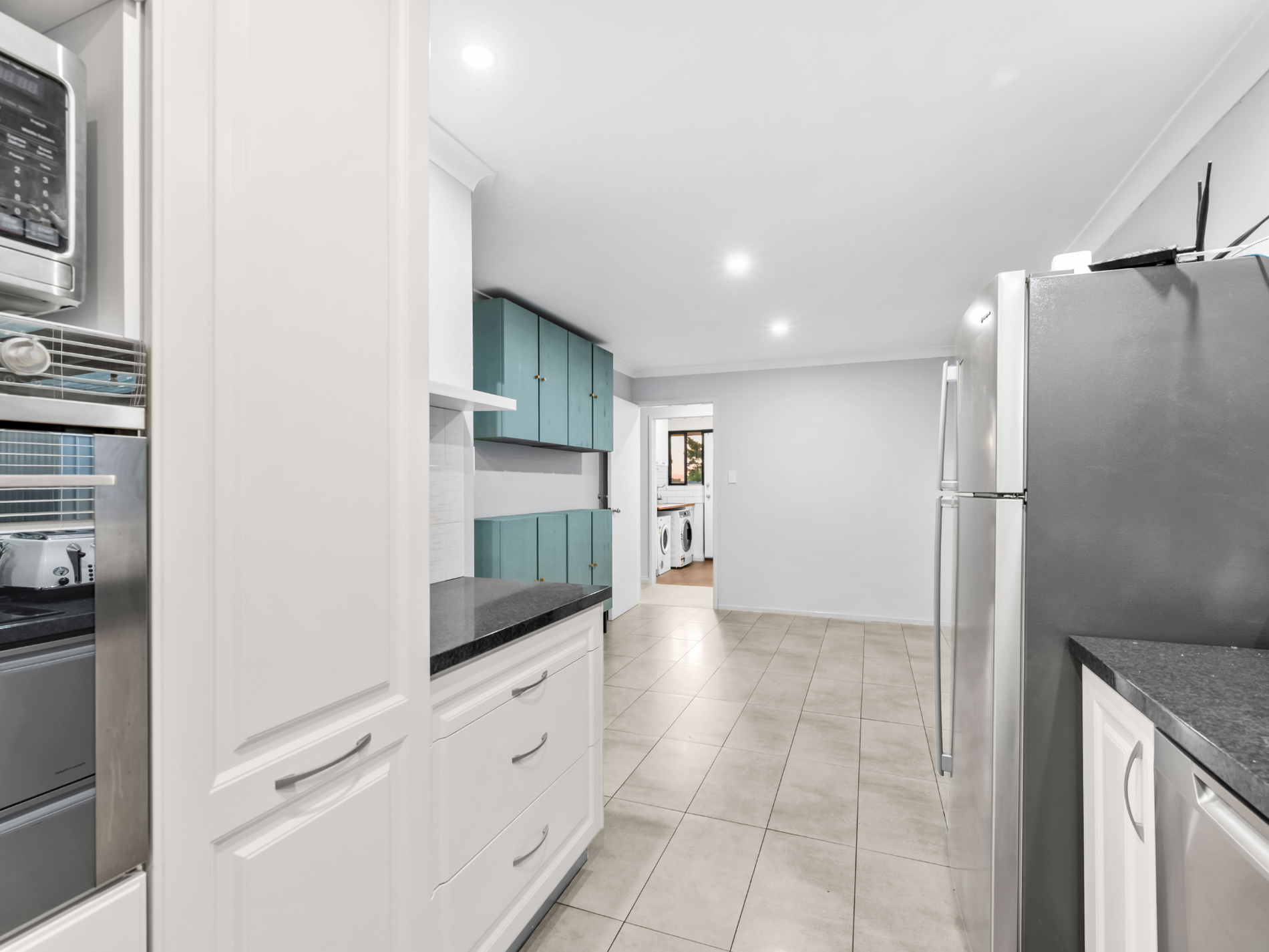- Open plan design connecting the kitchen and living area, ideal for family living